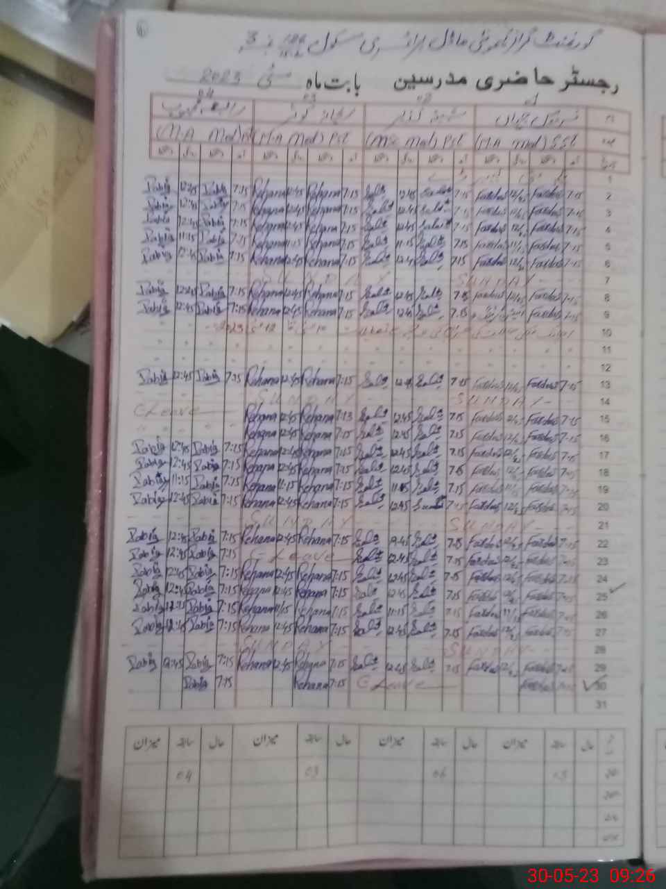 | CNIC | Full Name | Designation | R/C | Absence During Last Calender Month |