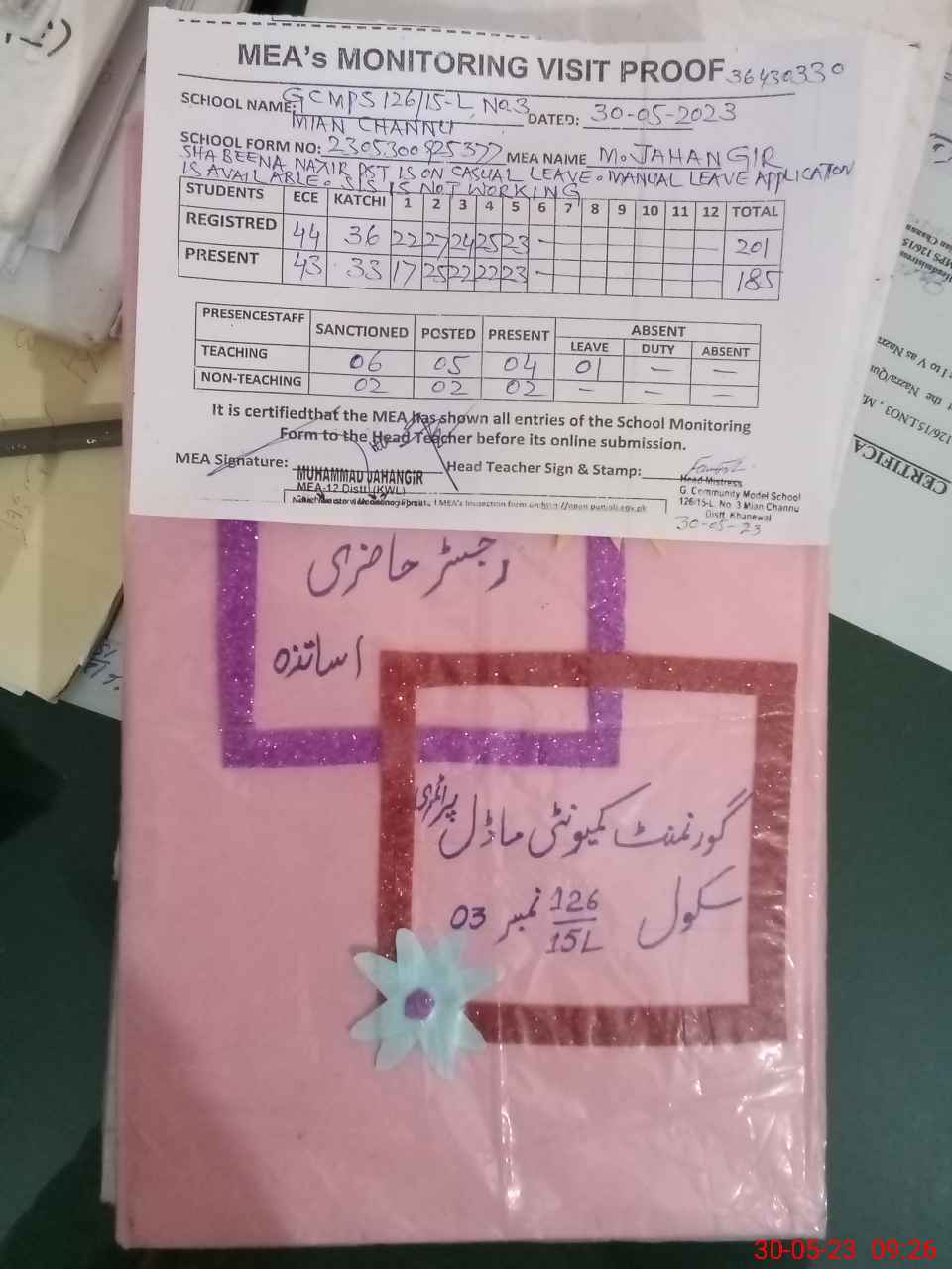 | Attendance Register | Head Teacher | MEA with School | Visit Proof |