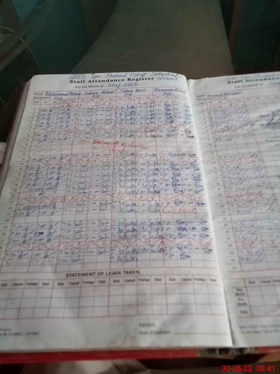 | CNIC | Full Name | Designation | R/C | Absence During Last Calender Month |
