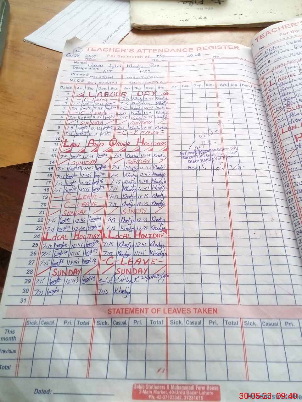 | Name: UM**** IQ**** Designation: (School Headmaster's/Headmistress's) PST Phone/Cell Number: 03**** |