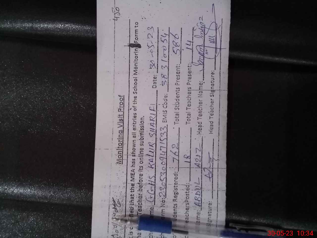 | Attendance Register | Head Teacher | MEA with School | Visit Proof |