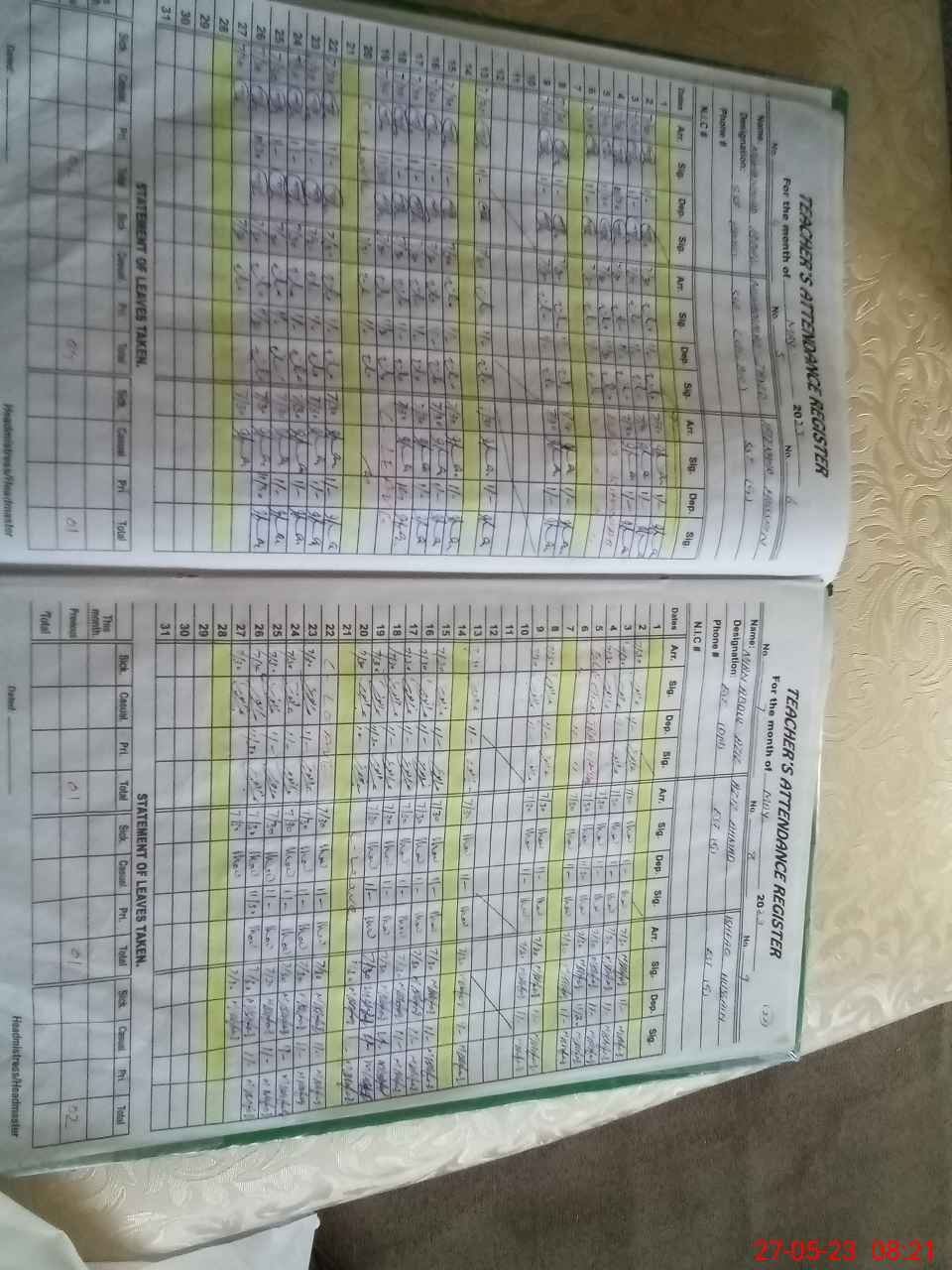 | CNIC | Full Name | Designation | R/C | Absence During Last Calender Month |