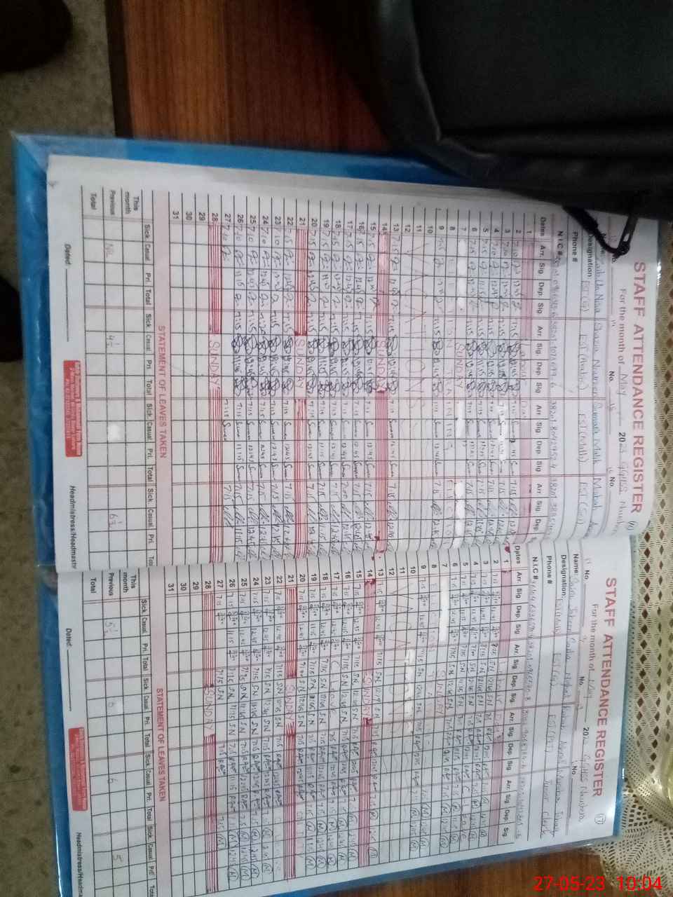 | CNIC | Full Name | Designation | R/C | Absence During Last Calender Month |