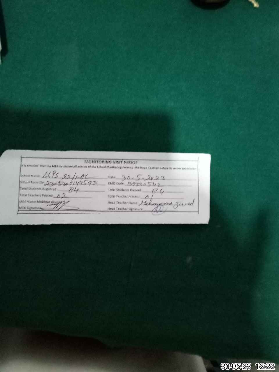 | Certified that this School was Inspected by the Undersigned MEA/DMO Today and the Information Stated Above is as Per Record. | |||||