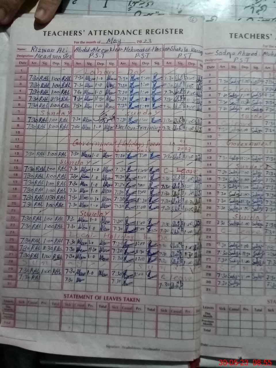 | Name: Ri**** Al**** Designation: (School Headmaster's/Headmistress's) PST Phone/Cell Number: 03**** |