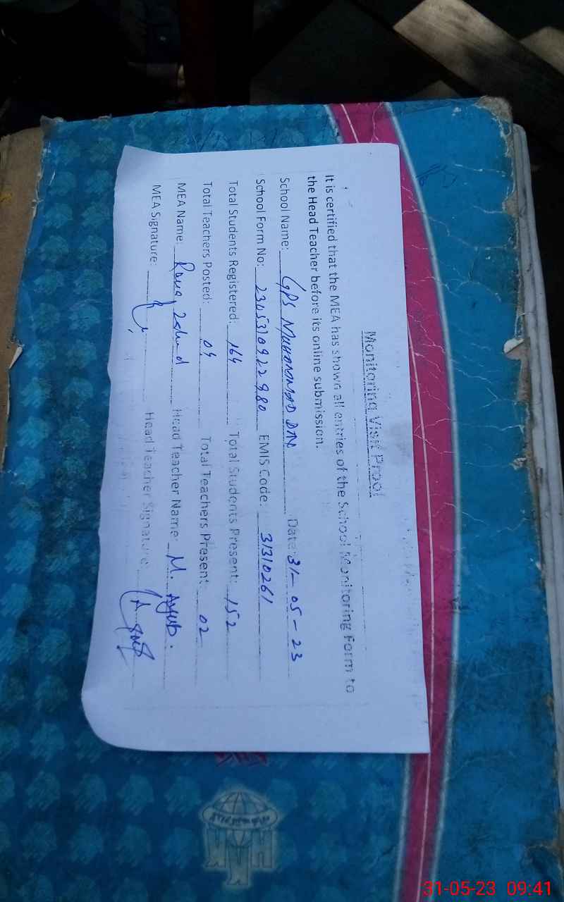 | EMIS Code: 31310261 | Name of School: GPS MUHAMMAD DIN | |||