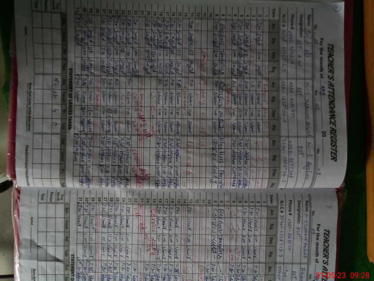 | Name: SA**** AL**** Designation: (School Headmaster's/Headmistress's) PST Phone/Cell Number: 03**** |