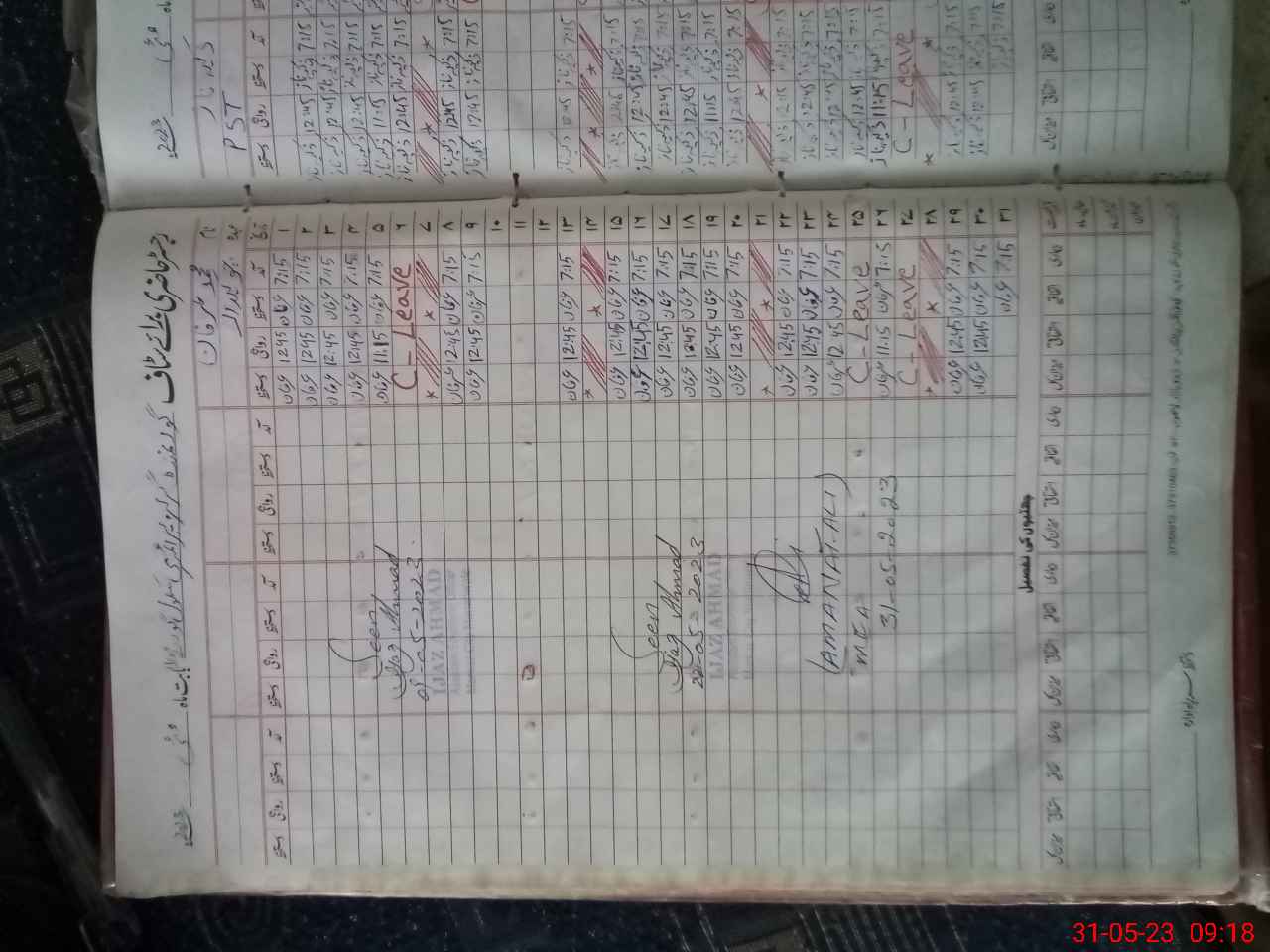 | CNIC | Full Name | Designation | R/C | Absence During Last Calender Month |