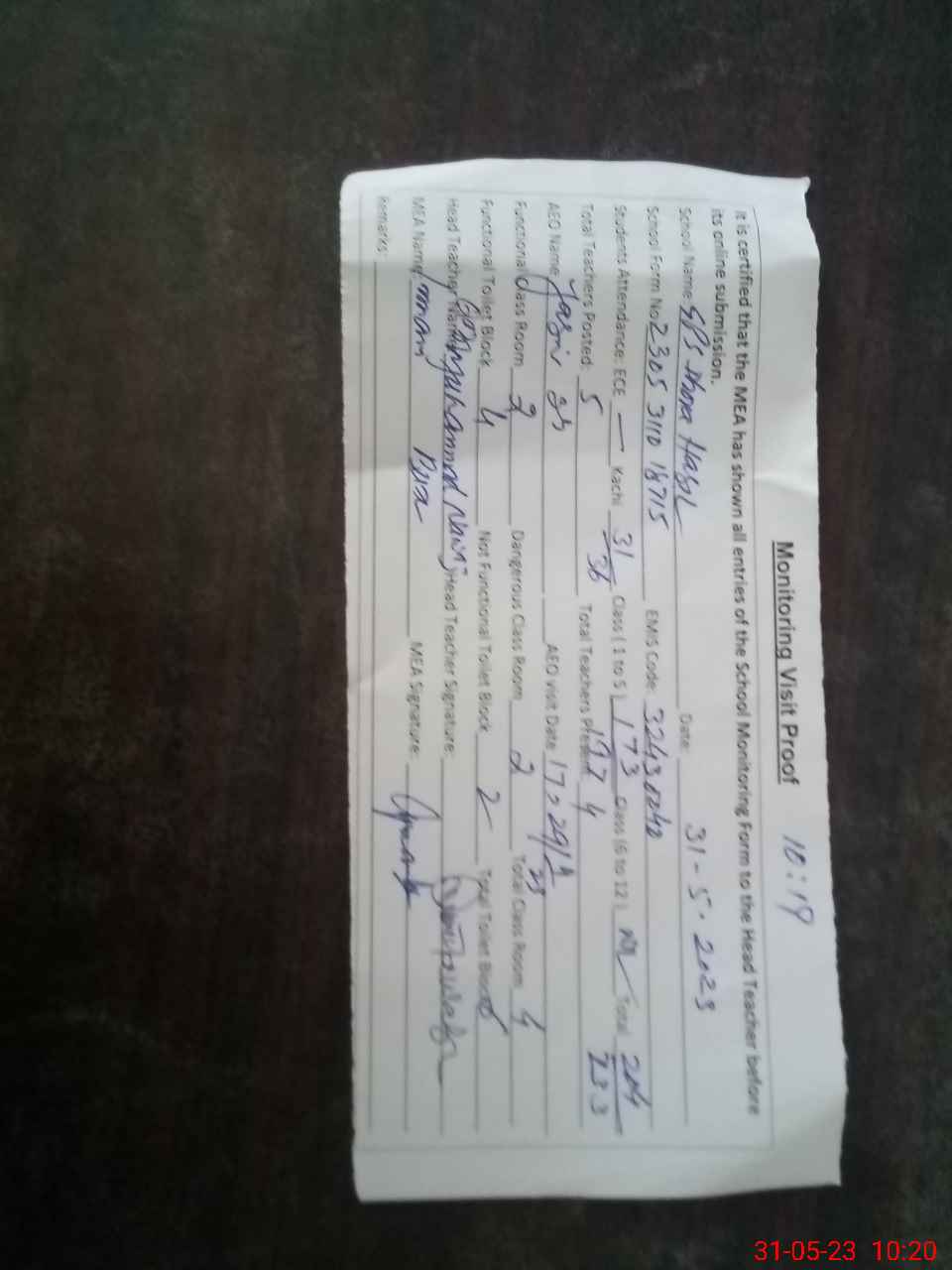| Certified that this School was Inspected by the Undersigned MEA/DMO Today and the Information Stated Above is as Per Record. | |||||