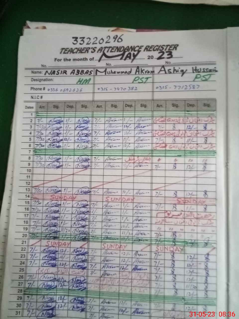 | Name: Na**** Ab**** Designation: (School Headmaster's/Headmistress's) PST Phone/Cell Number: 03**** |