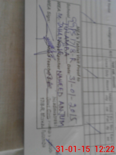 | School Visited by School Health & Nutrition Supervisor (No. of Visits) | 1 | Name1: | M IMRAN KHAN | Name2: | |