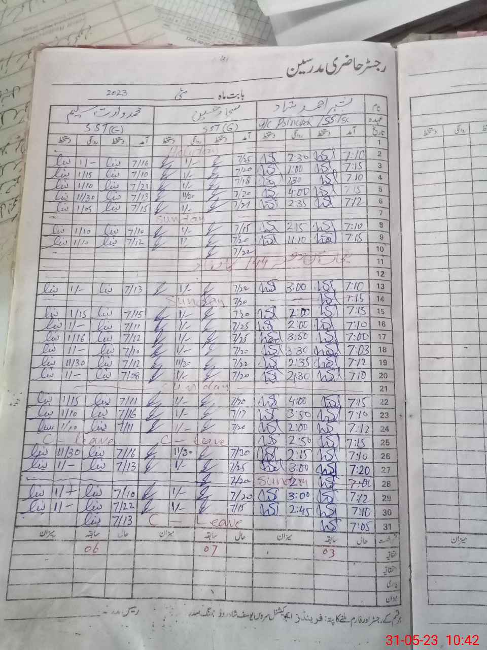 | 34**** | Sa**** Na**** | PST | Regular | 0 | 0 | 0 | 0 | 0 | 0 | 0 | 0 | 0 | Absent (Un-Authorized) |