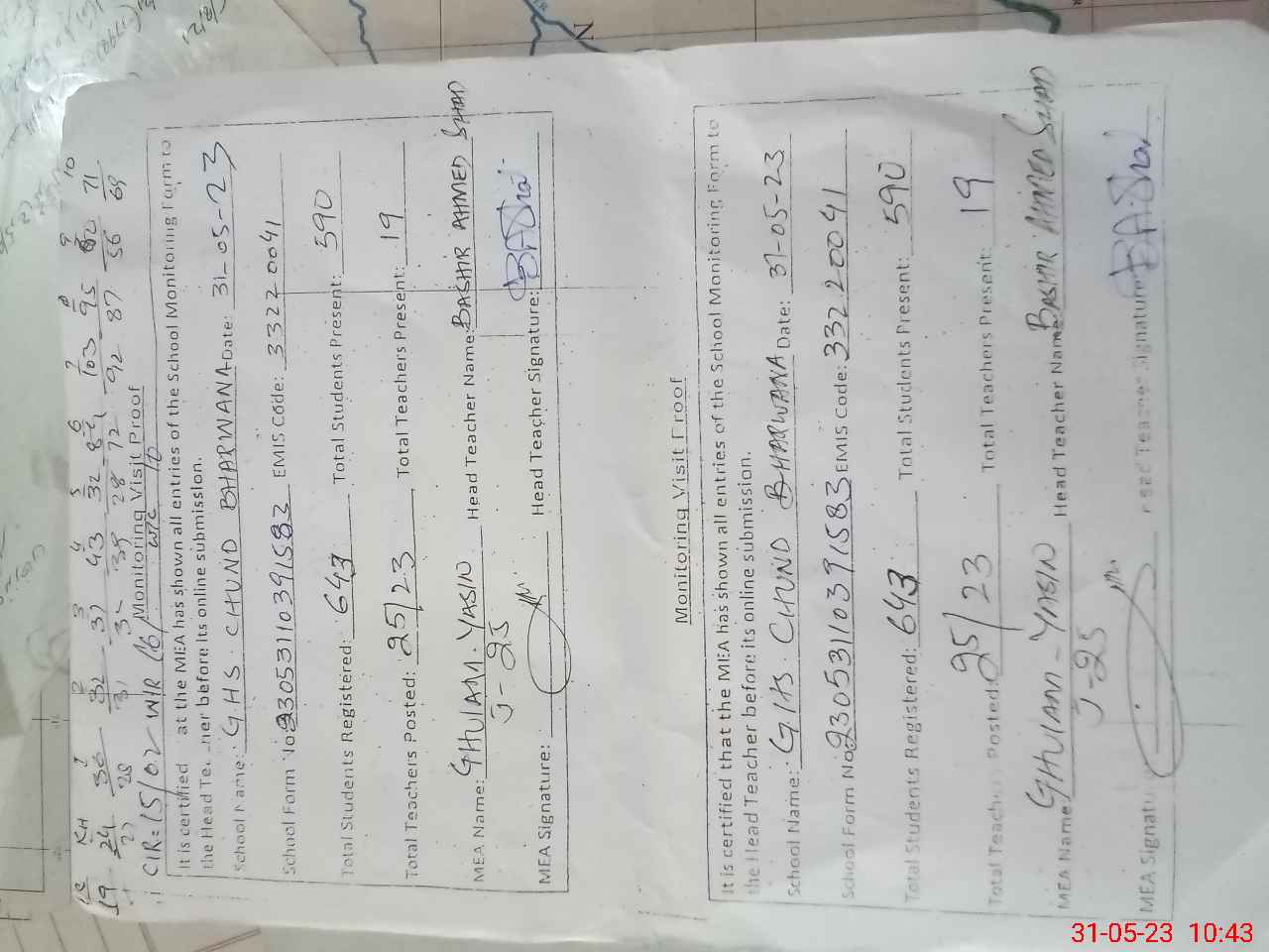 | EMIS Code: 33220041 | Name of School: GHS CHUND BHARWANA | |||