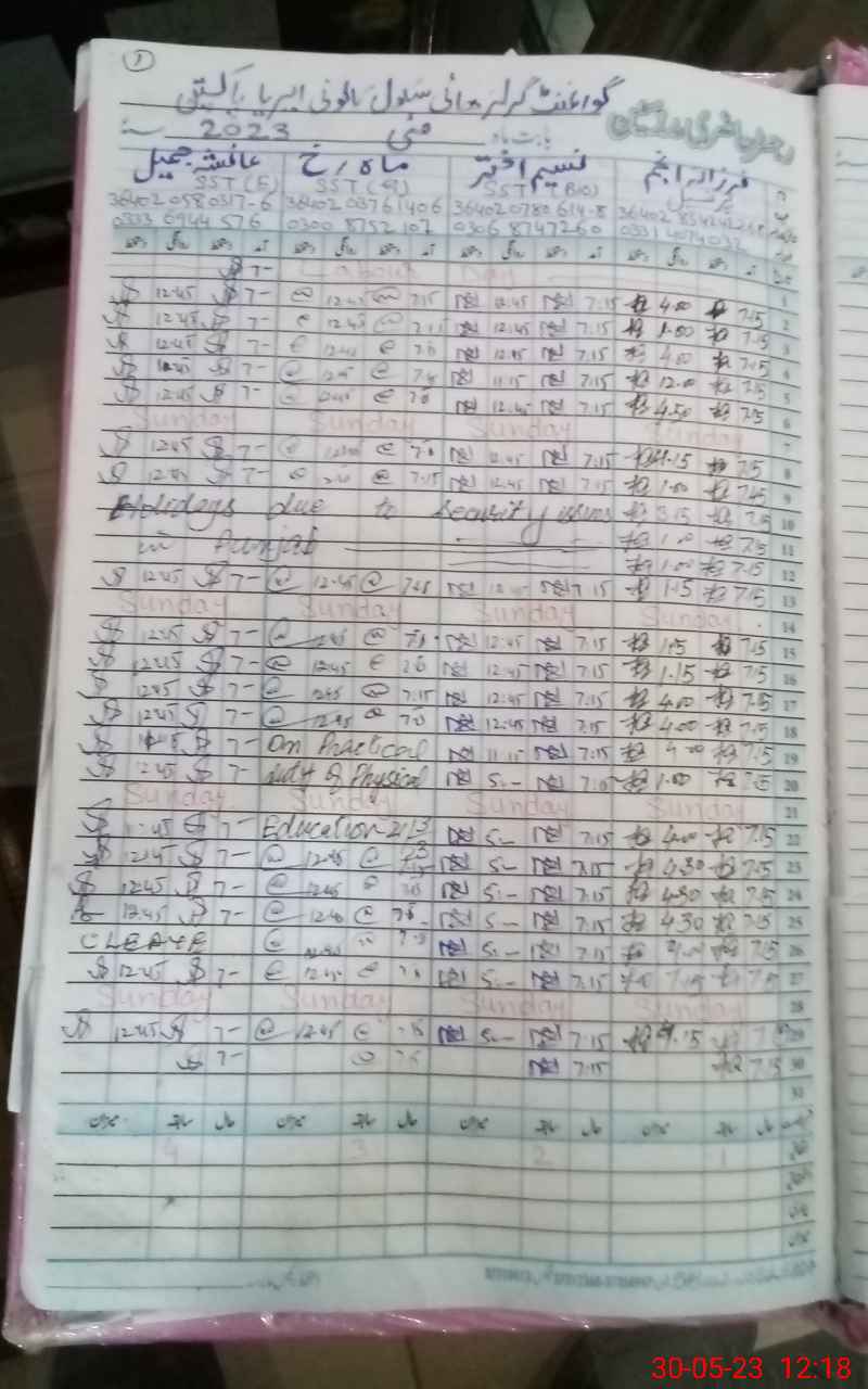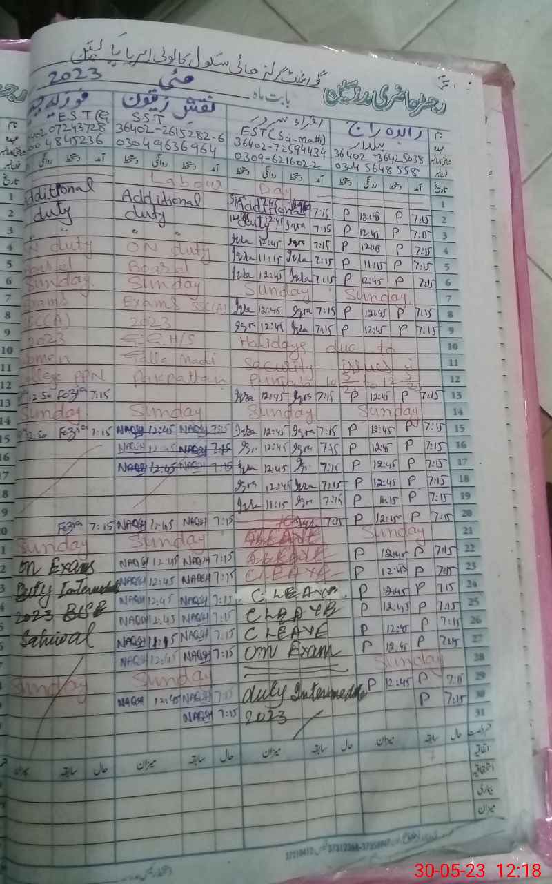 | 36**** | Sh**** Sa**** | Regular | 0 | 30 | 0 | 0 | 0 | 0 | 0 | 0 | 0 | Exam Duty | |