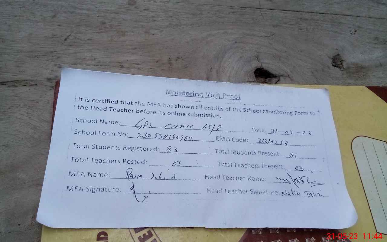 | Attendance Register | Head Teacher | MEA with School | Visit Proof |