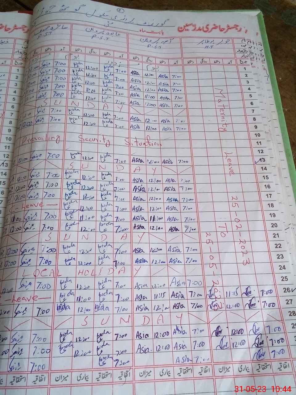 | Leave | Duty | Absent | Maternity | Medical | Ex- Pak |