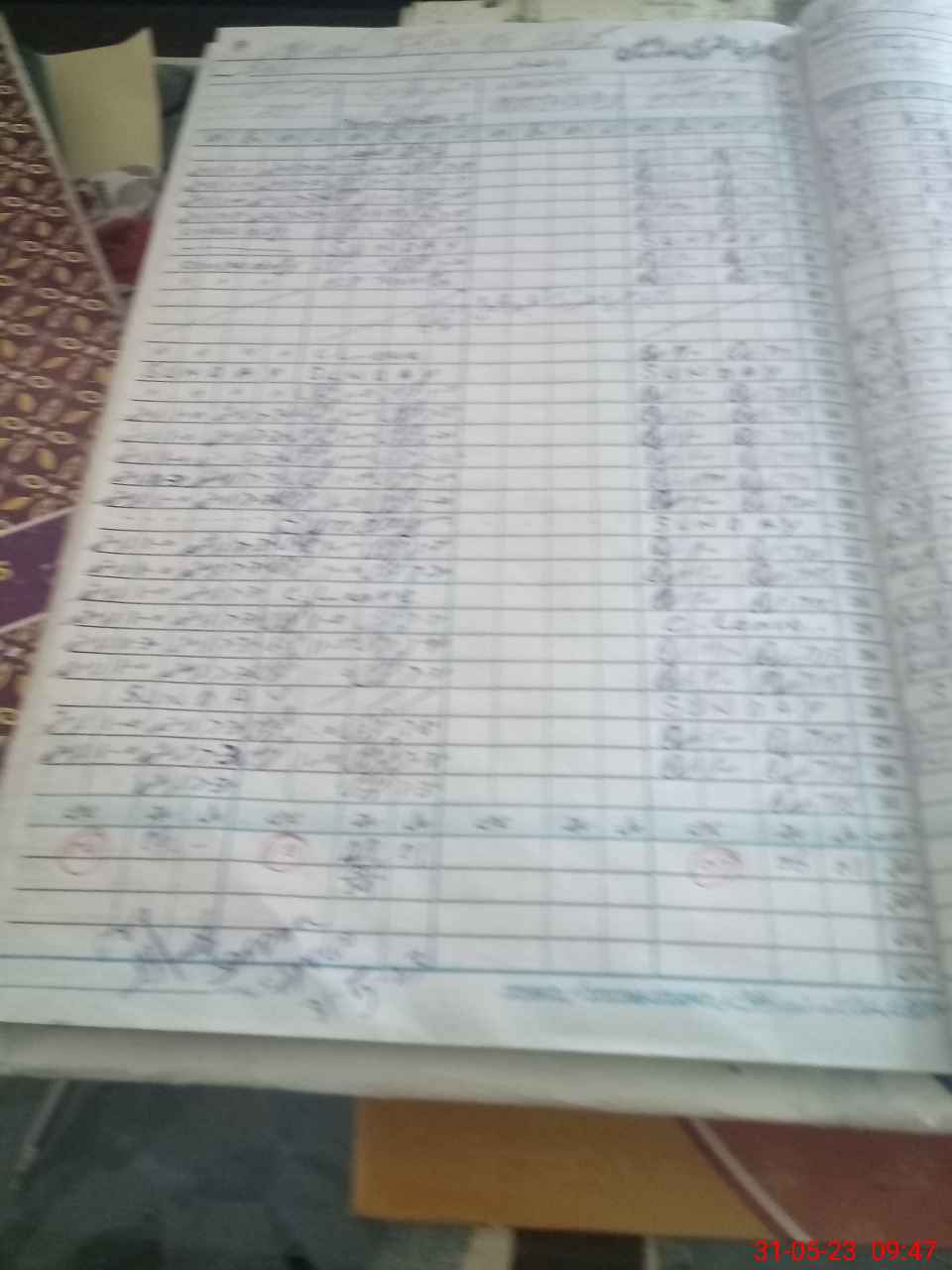 | No. of Students Present - Male | 20 | 0 | 32 | 22 | 28 | 30 | 32 | 20 | 24 | 33 | 21 | 262 | ||||