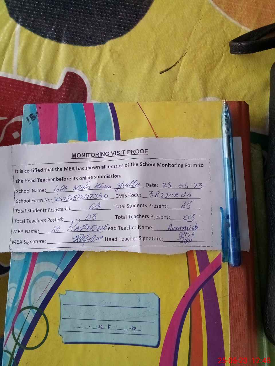 | Attendance Register | Head Teacher | MEA with School | Visit Proof |