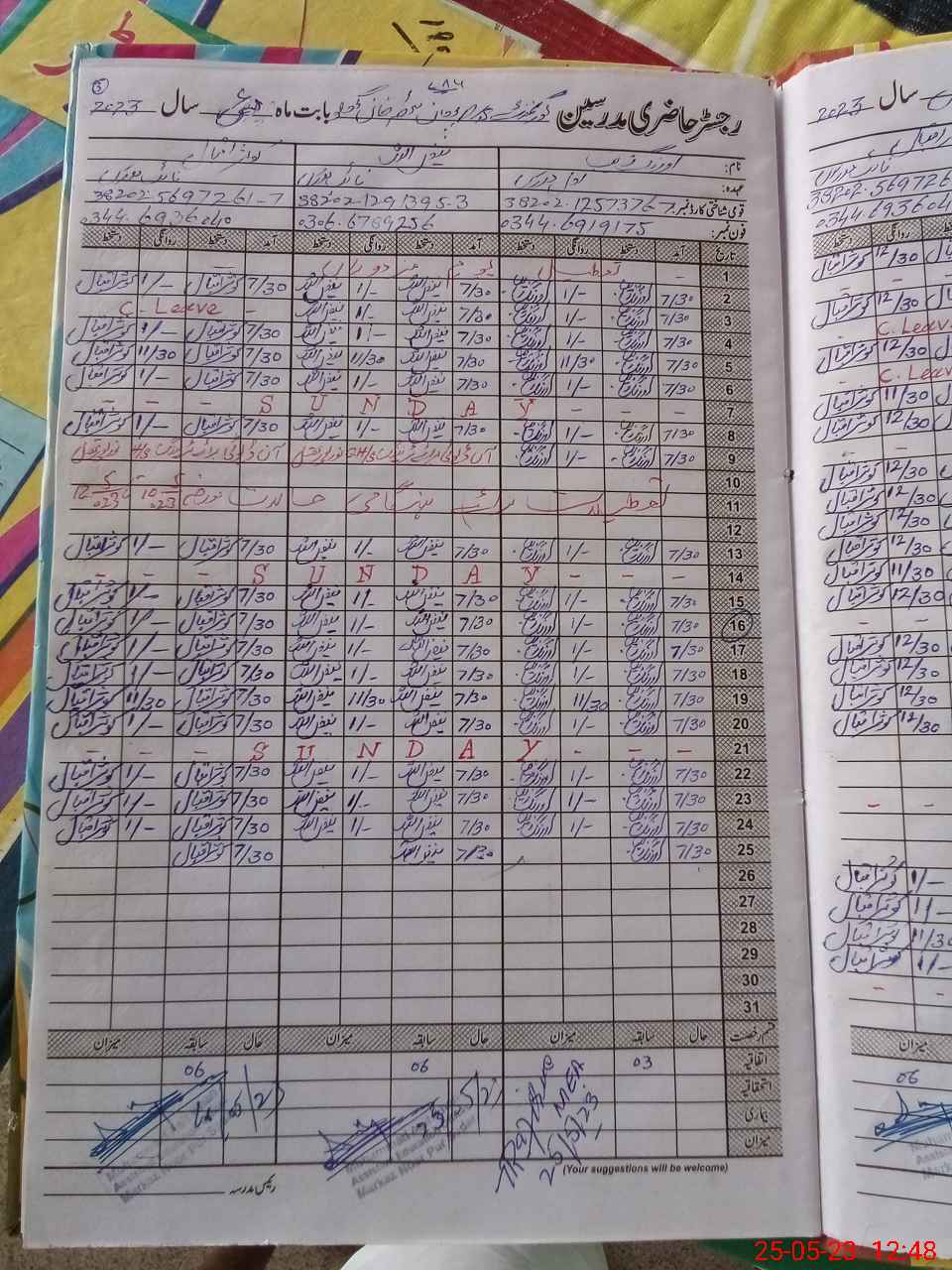 | CNIC | Full Name | Designation | R/C | Absence During Last Calender Month |