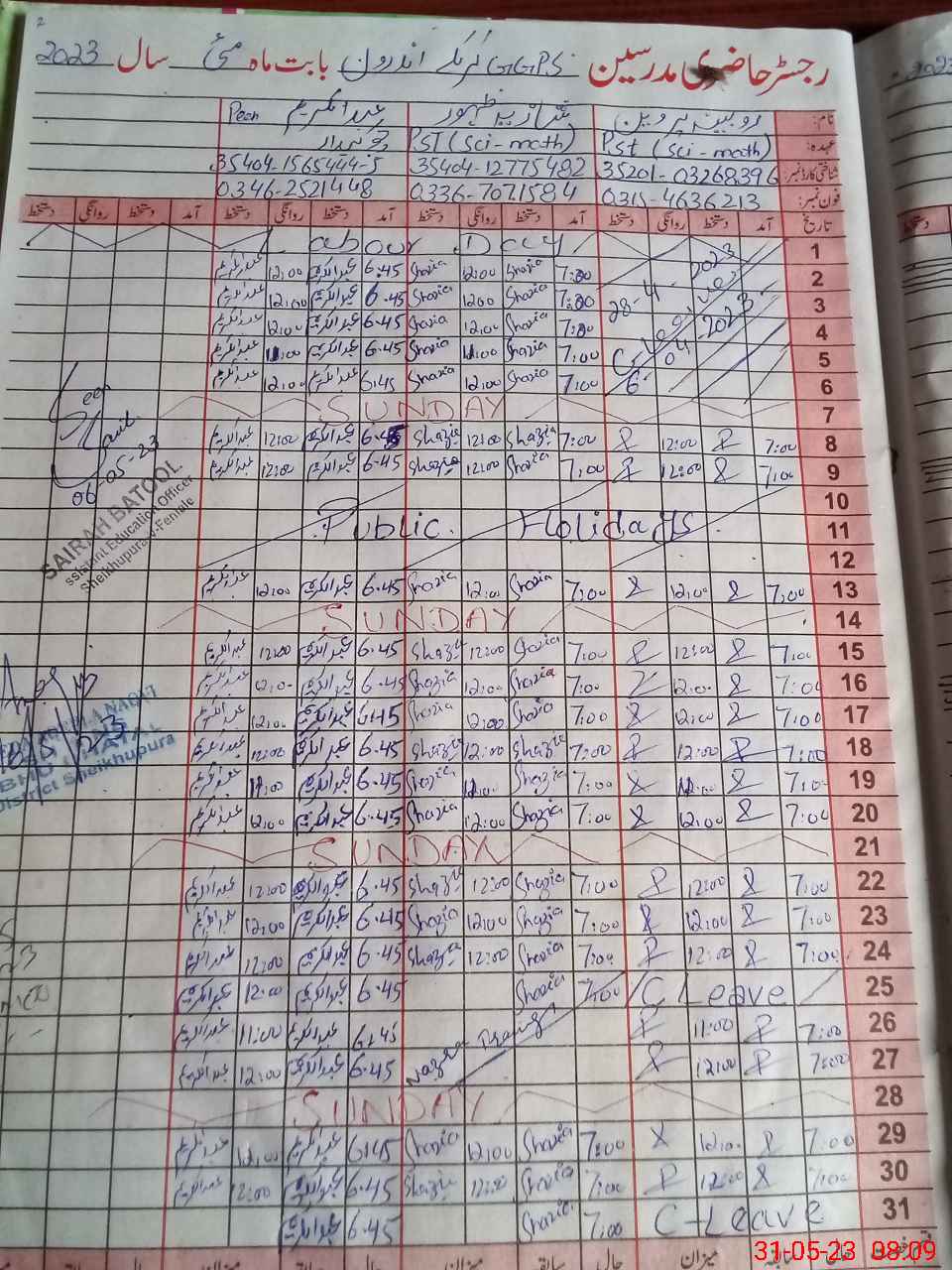 | Name: RU**** PE**** Designation: (School Headmaster's/Headmistress's) PTC Phone/Cell Number: 03**** |
