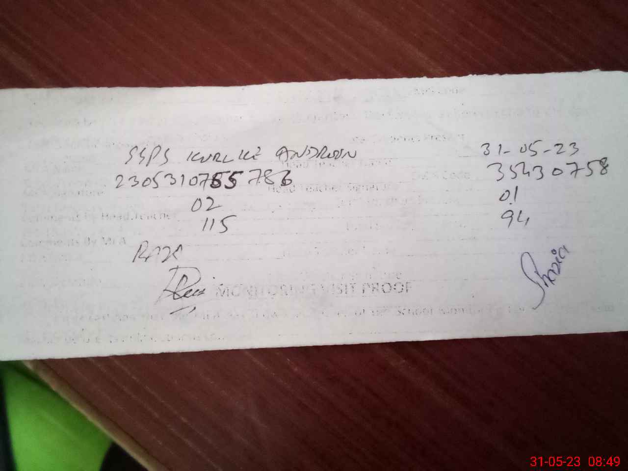 | Attendance Register | Head Teacher | MEA with School | Visit Proof |