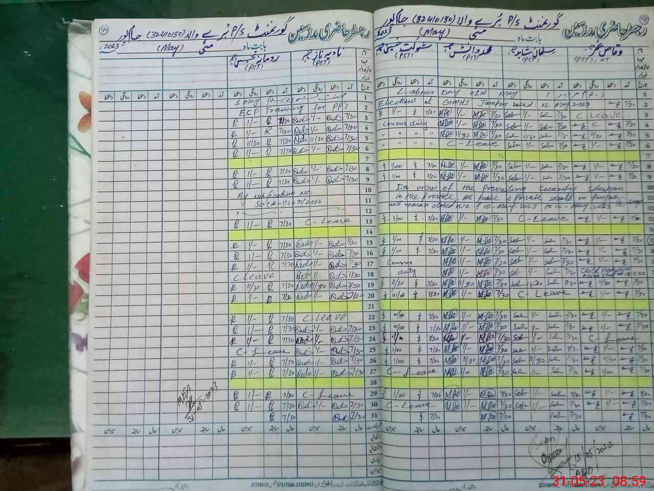 | CNIC | Full Name | Designation | R/C | Absence During Last Calender Month |
