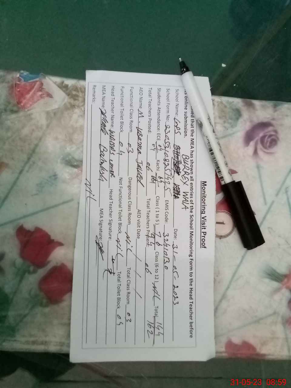 | Attendance Register | Head Teacher | MEA with School | Visit Proof |