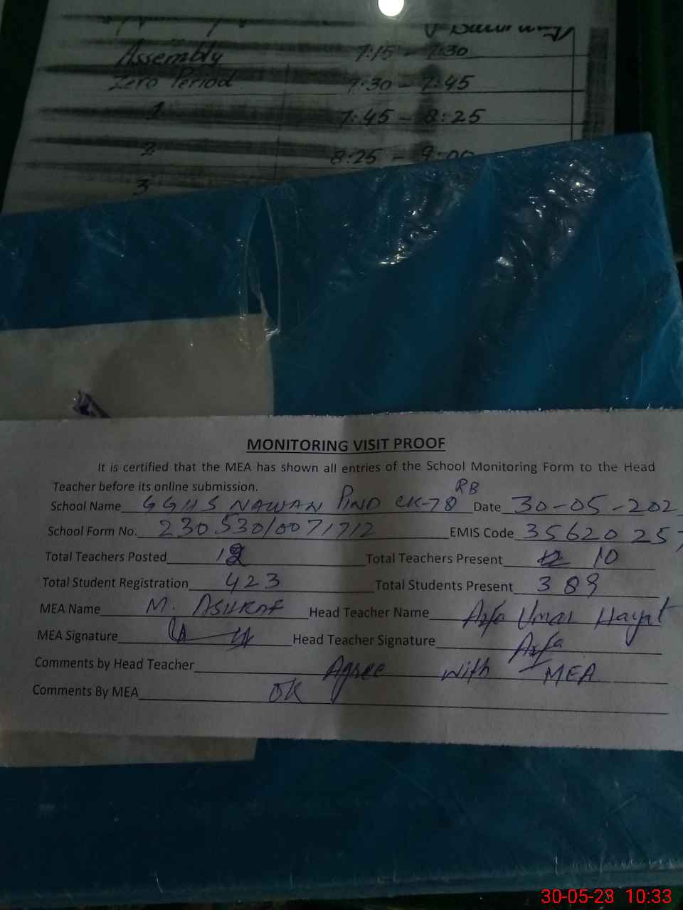 | EMIS Code: 35620257 | Name of School: GGHS NAWAN PIND CHAK 78 RB | |||