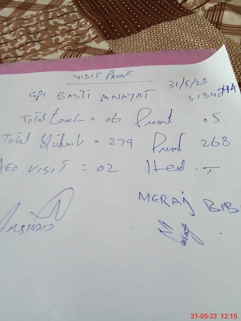 | EMIS Code: 31340744 | Name of School: GPS BASTI ANAYAT | |||