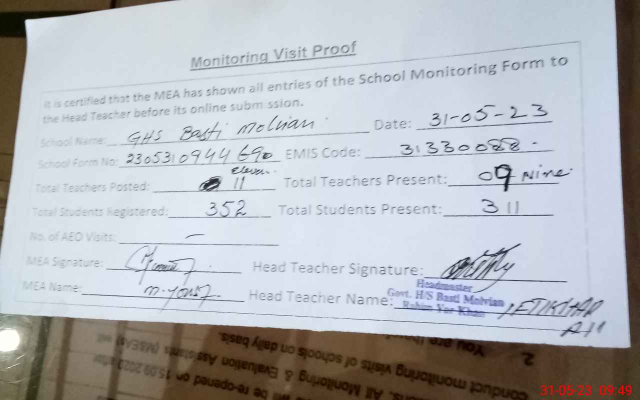 | EMIS Code: 31330088 | Name of School: GHS BASTI MOLVIAN | |||