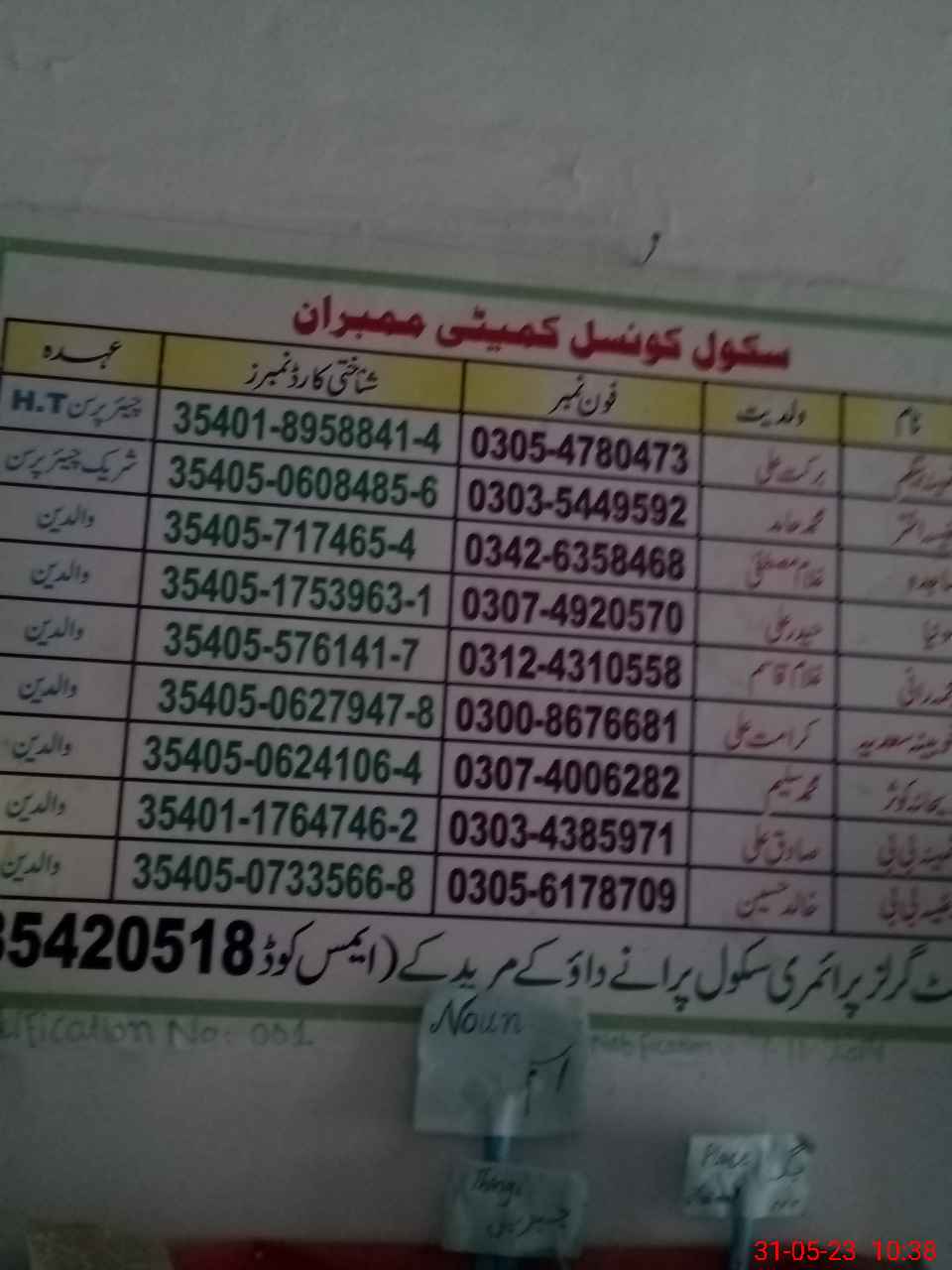 | Name: SA**** BE**** Designation: (School Headmaster's/Headmistress's) PTC Phone/Cell Number: 03**** |