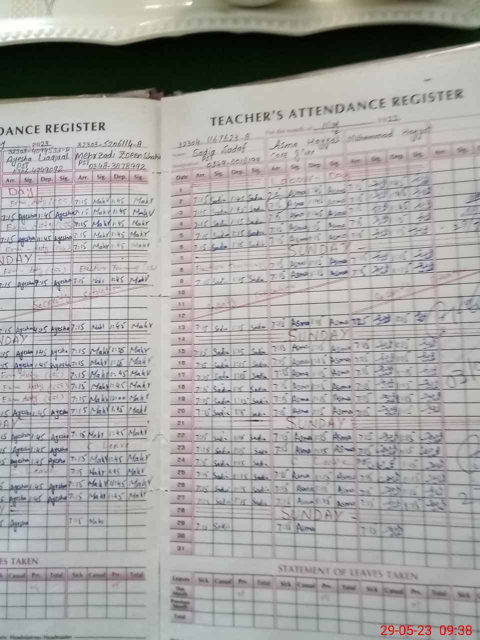 | Name: ZA**** PA**** Designation: (School Headmaster's/Headmistress's) S S T Phone/Cell Number: 03**** |