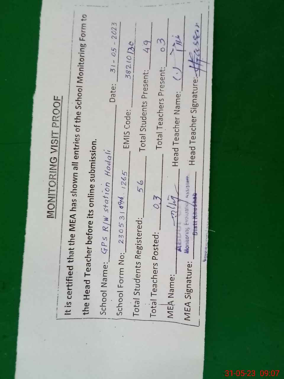 | EMIS Code: 38210130 | Name of School: GPS RAILWAY STATION HADALI | |||