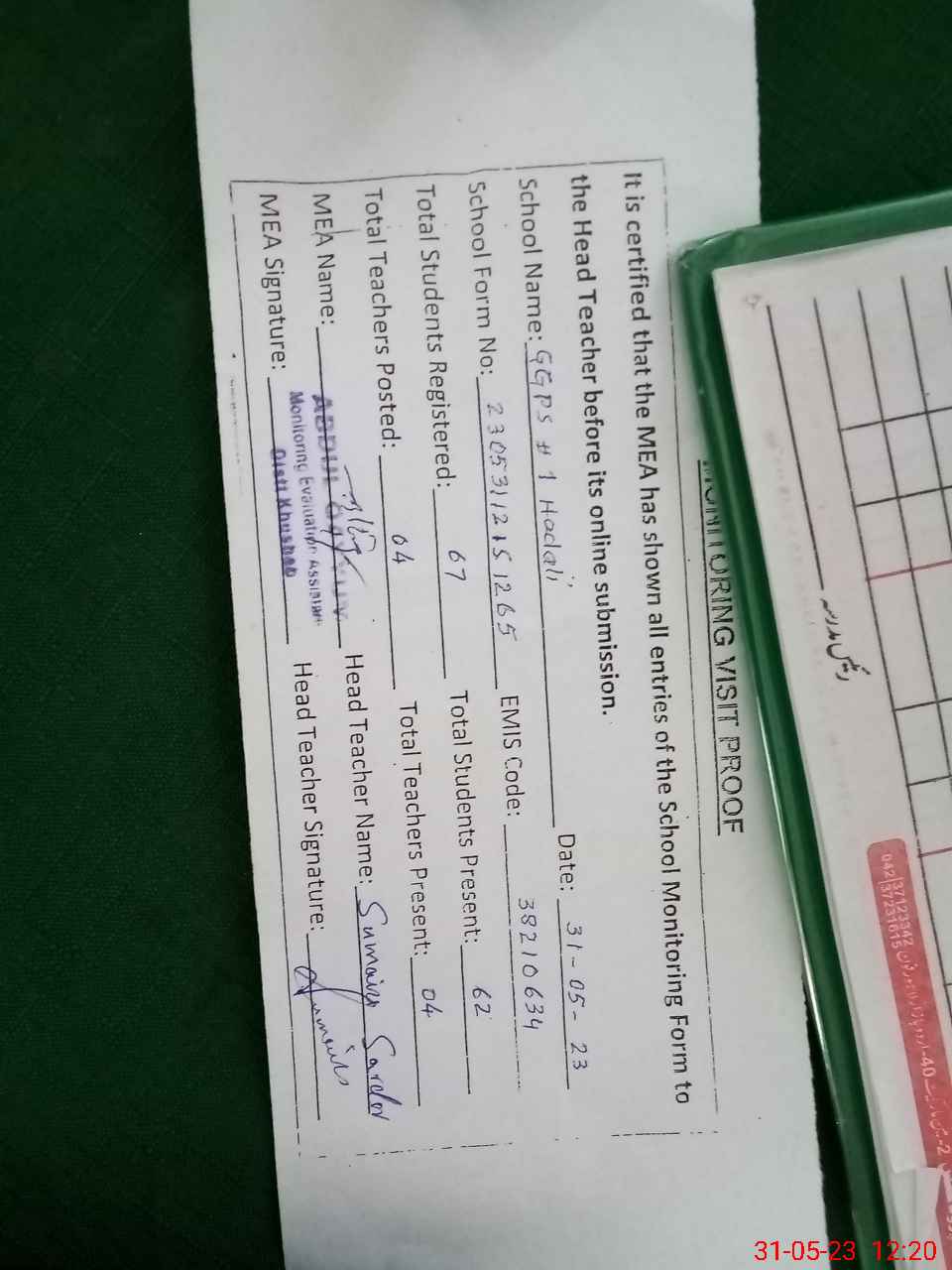 | EMIS Code: 38210634 | Name of School: GGPS NO. 1 HADALI | |||