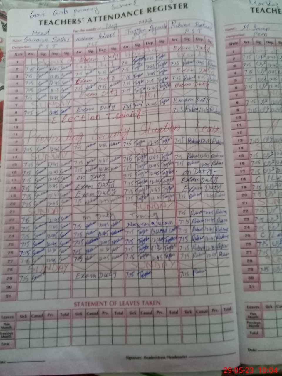 | 32**** | No**** Id**** | PST | Regular | 0 | 0 | 0 | 0 | 0 | 0 | 0 | 0 | 0 | Exam Duty |