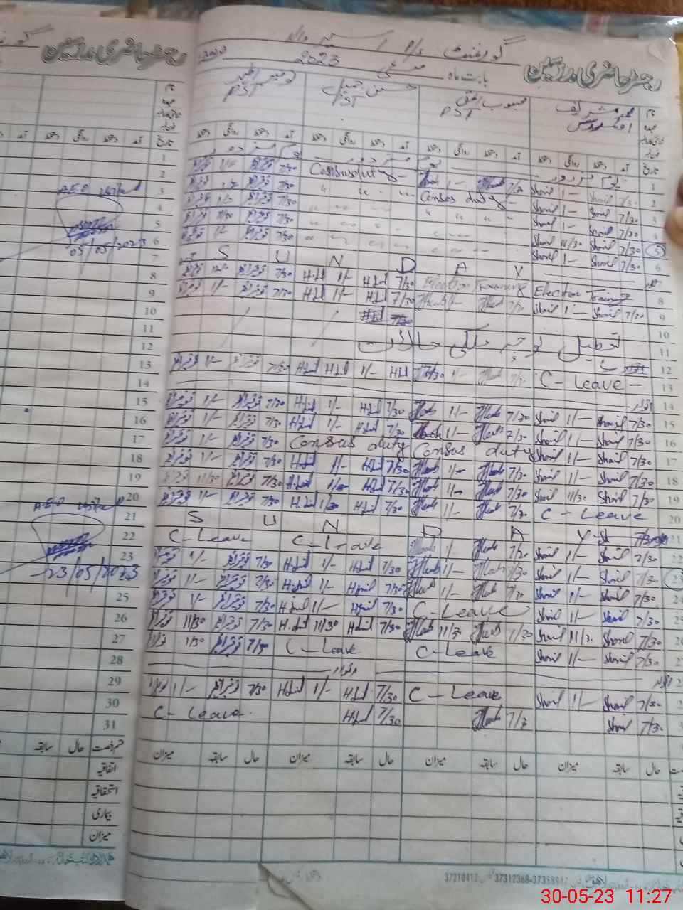 | CNIC | Full Name | Designation | R/C | Absence During Last Calender Month |