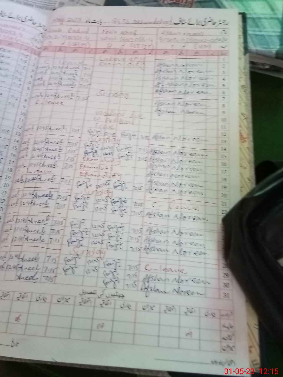 | CNIC | Full Name | Designation | R/C | Absence During Last Calender Month |