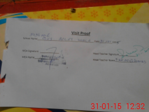 | Attendance Register | Head Teacher | MEA with School | Visit Proof |