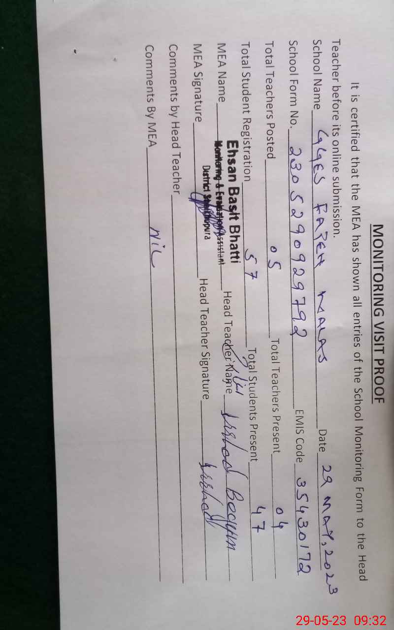 | EMIS Code: 35430172 | Name of School: GGES FATEH KALAS | |||