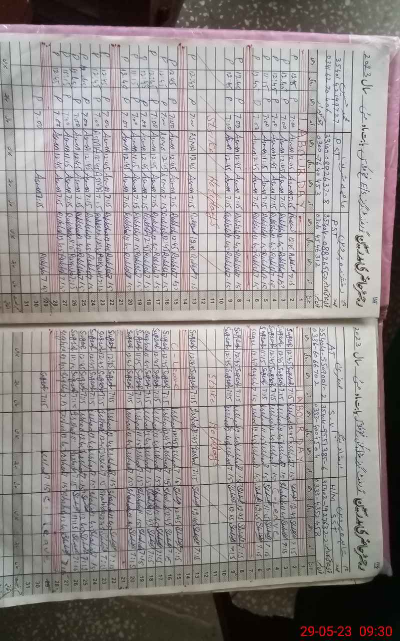 | CNIC | Full Name | Designation | R/C | Absence During Last Calender Month |