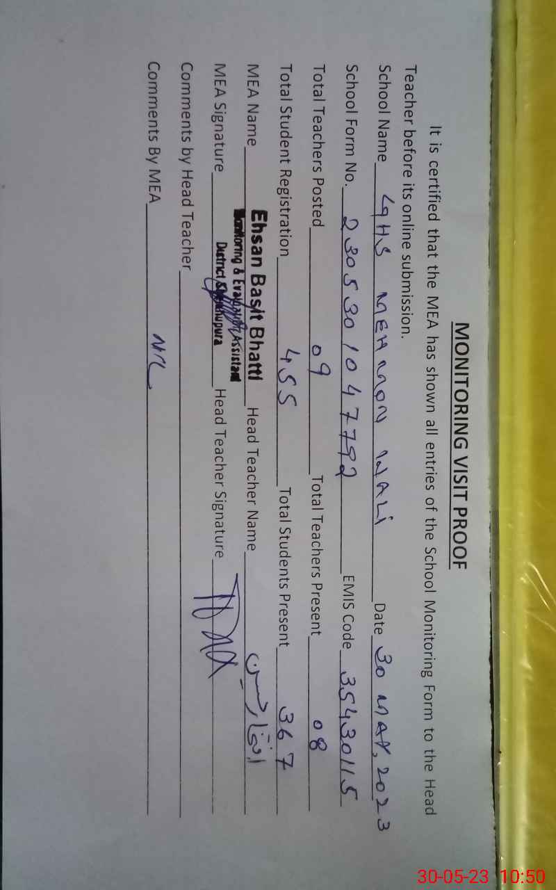 | EMIS Code: 35430115 | Name of School: GHS MAHMON WALI | |||