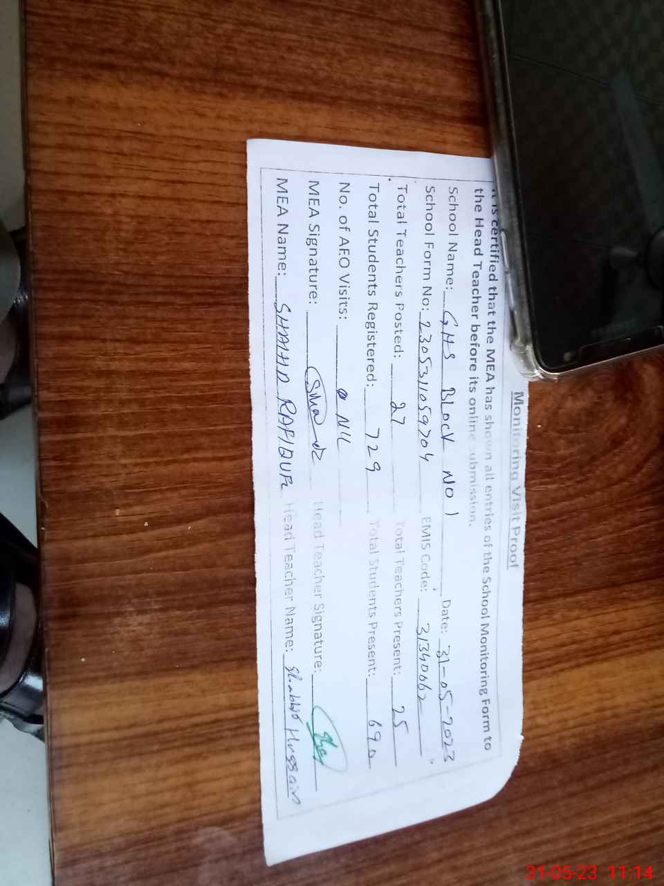 | EMIS Code: 31340062 | Name of School: GHS BLOCK NO.1 | |||