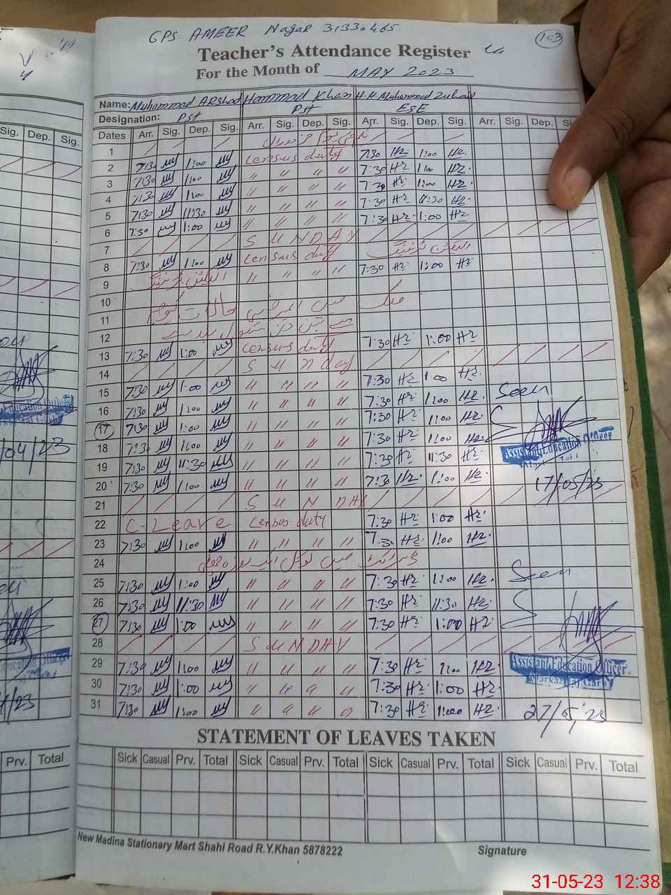 | Name: Mu**** Ar**** Designation: (School Headmaster's/Headmistress's) PST/PTC/JV Phone/Cell Number: 03**** |