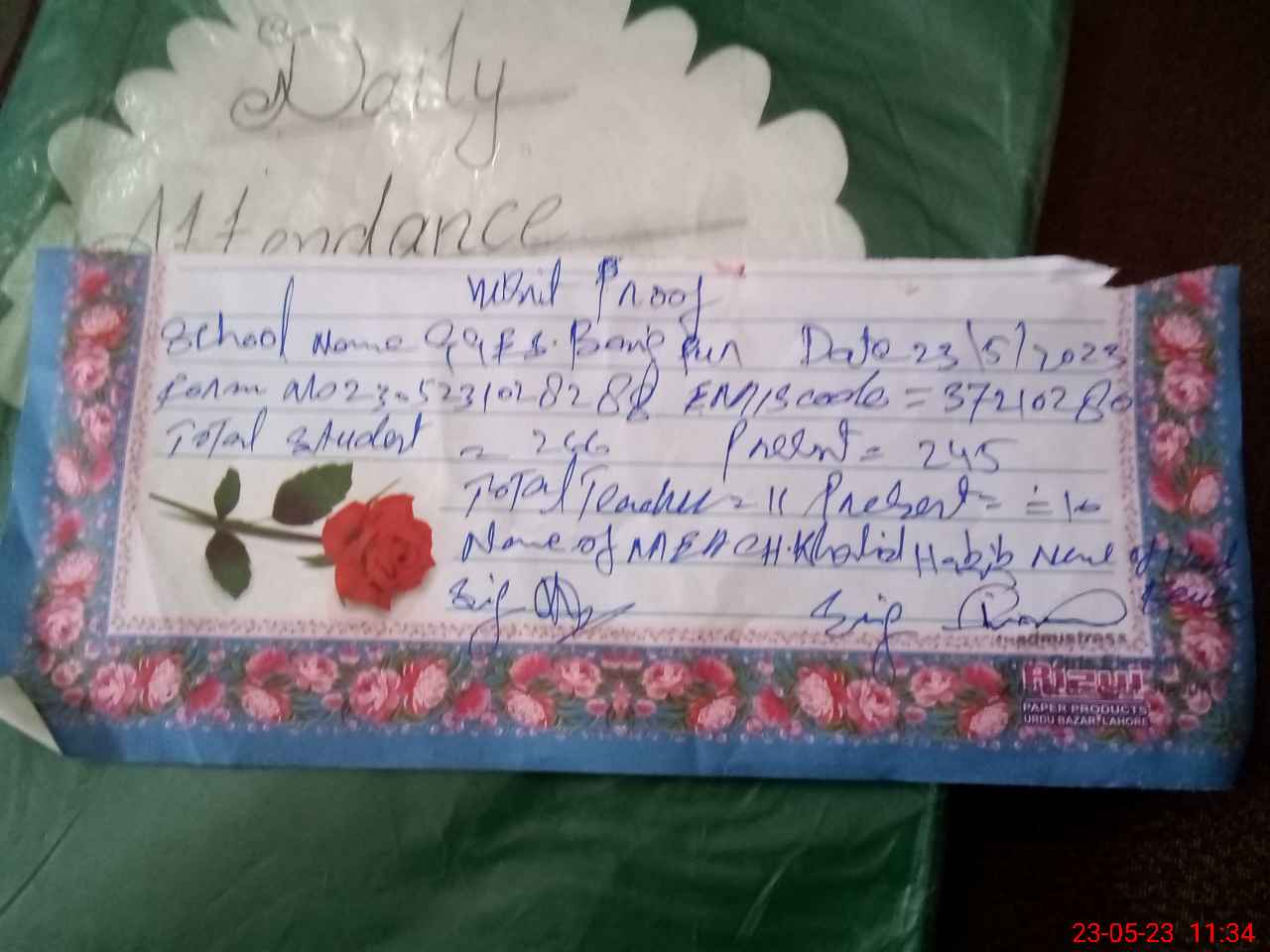 | Remarks (Use Separate Page if Required): Tanveer kousar cnic no3710343518850 name with out teacher list | |||||