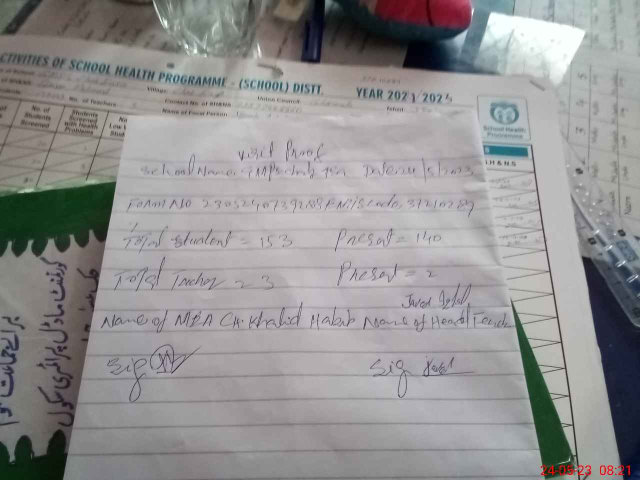| School Visited by School Health & Nutrition Supervisor (No. of Visits) | 1 | Name1: | Qasir Mehmood | Name2: | |