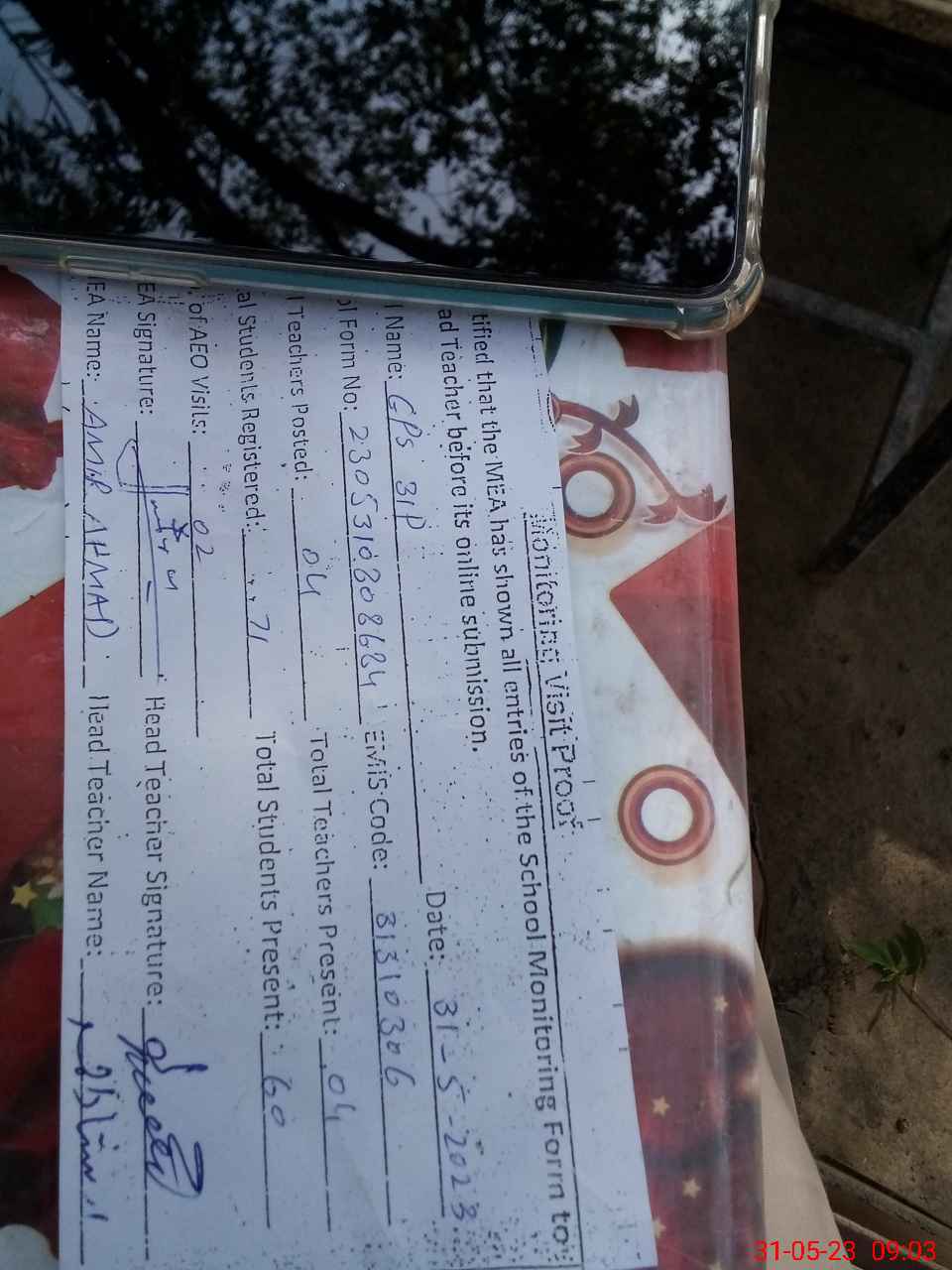 | EMIS Code: 31310306 | Name of School: GPS CHAK NO. 31/P. P.O. BAGHO BEHAR | |||