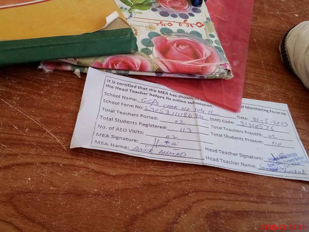 | EMIS Code: 31310576 | Name of School: GGPS CHAK NO.104/1-L | |||