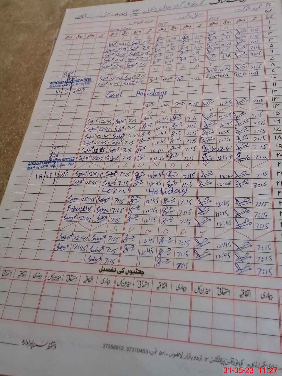 | District: RAHIMYAR KHAN | Tehsil: KHANPUR | Markaz: CHAK NO 45/P-FEMALE | Level: Primary | |