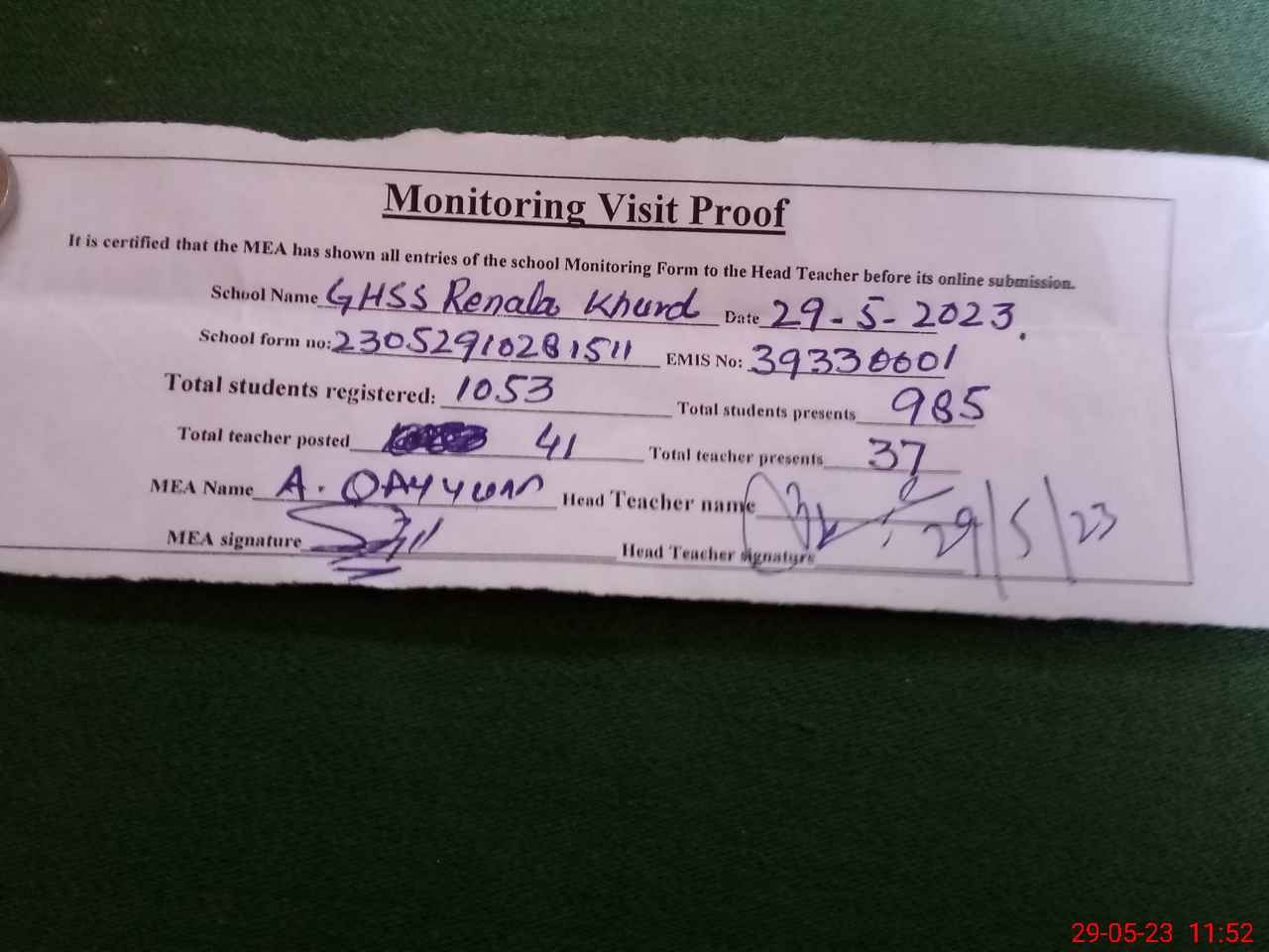 | EMIS Code: 39330001 | Name of School: GHSS RENALA KHURD | |||