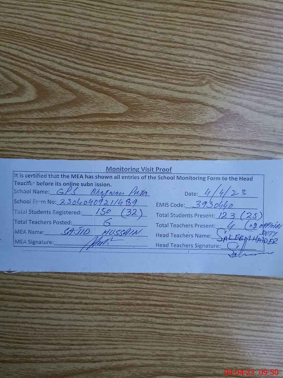| EMIS Code: 39310440 | Name of School: GPS BHAGWAN PURA | |||